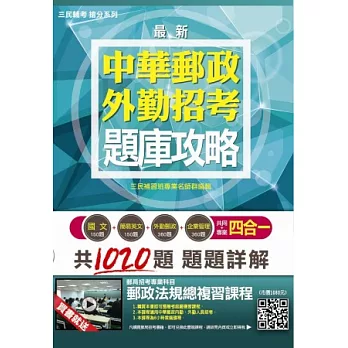 郵局外勤四合一題庫攻略除了全科目模擬試題4回外,尚收錄近年中華郵政(郵局)招考考題,讓您鑑往知來,掌握中華郵政(郵局)考情趨勢!