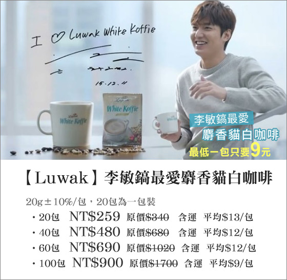 李敏鎬歐爸也愛的【Luwak】麝香貓白咖啡,最低一杯僅需花費9元!直接沖泡熱熱喝,或冰起來當作冷飲喝也美味,快享受與歐爸同樣迷人的好滋味!